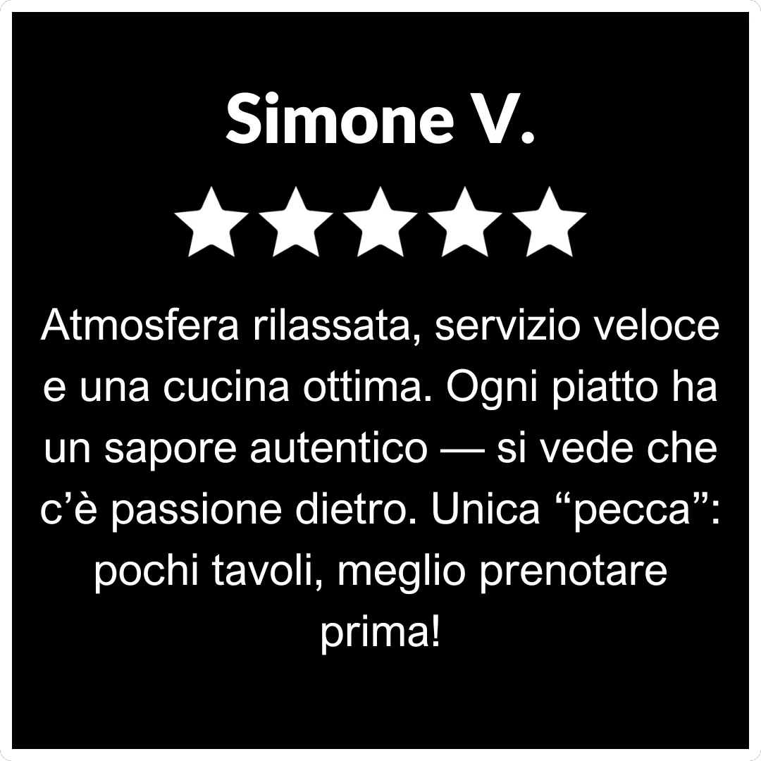 I posti sono limitati ogni sera. Ti consigliamo di prenotare con anticipo per garantirti il tavolo.